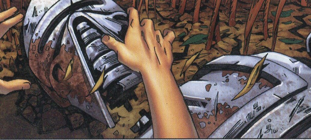 On page 2, young Gaius finds an old destroyed Cylon in the fields near his family's farm on Aerilon. It is a model not previously seen.