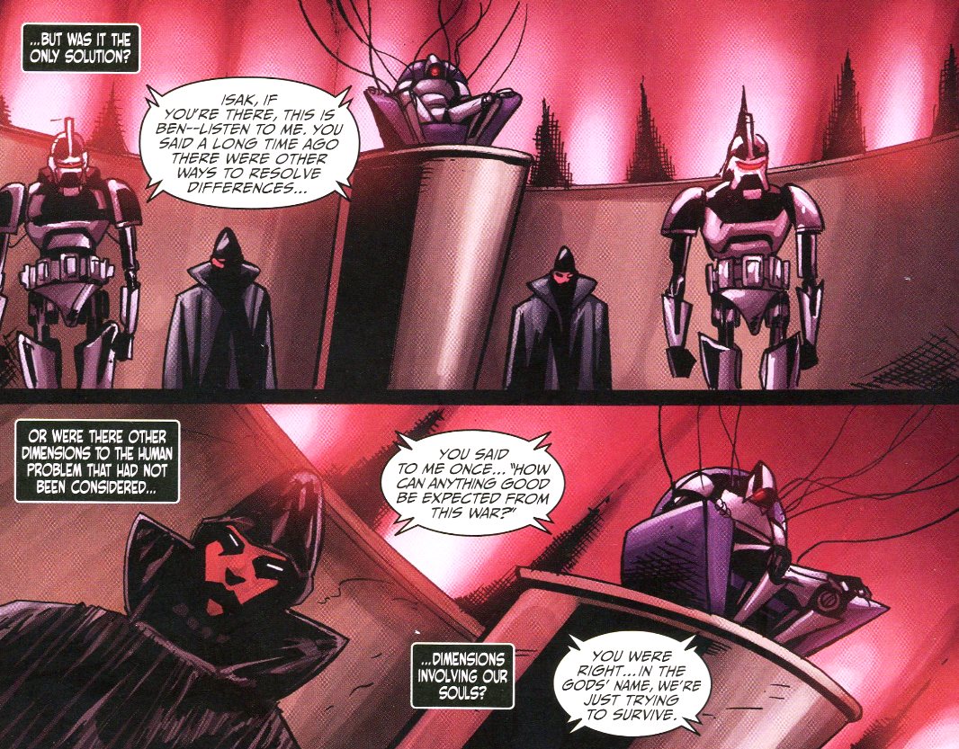 On the last page, notice that the Cylons take the stained glass