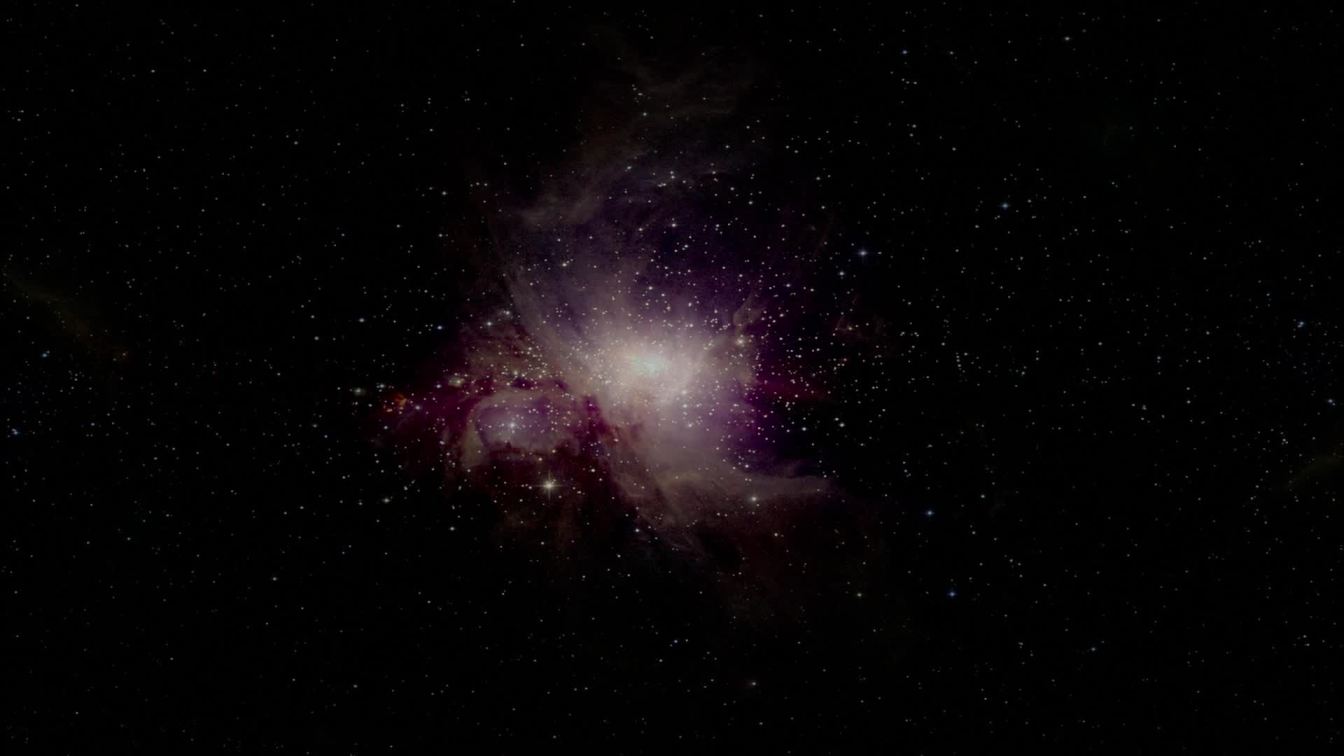Galactica..." segment, a reddish-violet nebula is