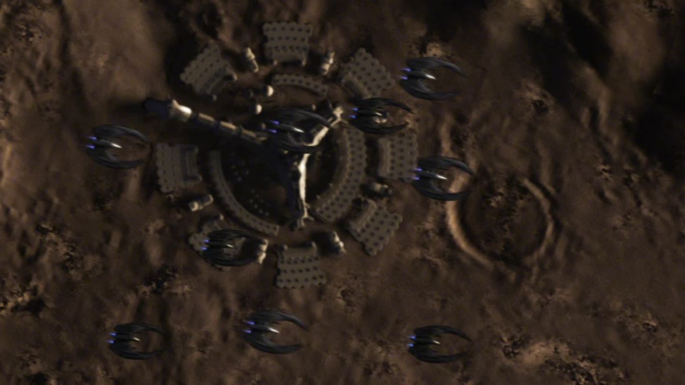 At 4:55 on the Blu-ray, the Cylon refueling base looks a lot
