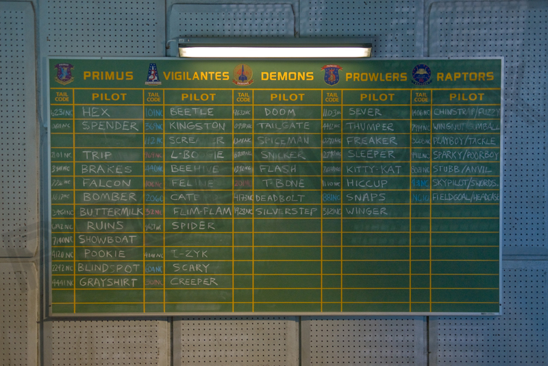 Pilots listed on the war room chalkboard photo: Hex, Spender,