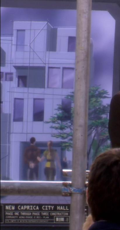 At 19:49 on the Blu-ray, picture boards behind Baltar at