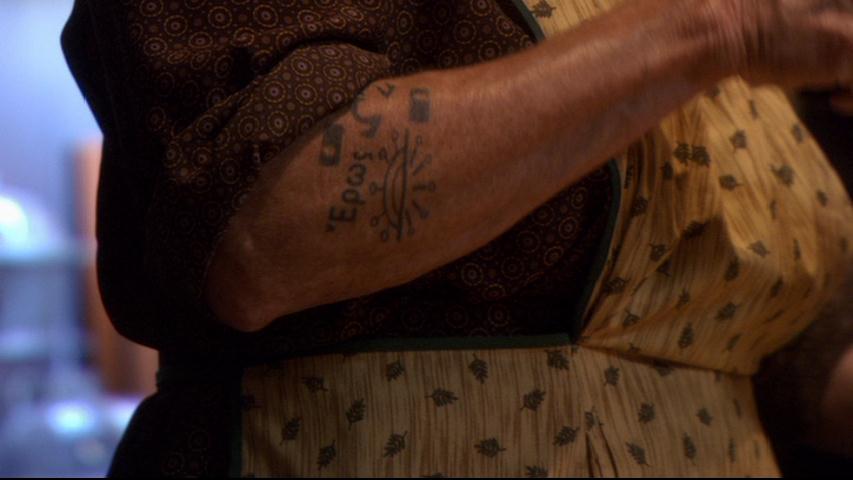 At 34:53 on the DVD, the tattoo