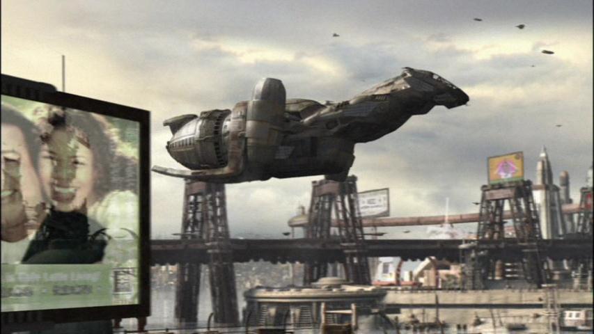 DVD, we see several holographic billboards.