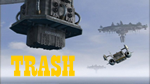 The large trash bins located on the underside of the floating platforms of Bellerophon Estates appear to bear the corporate name Amalgamated Waste Industries.