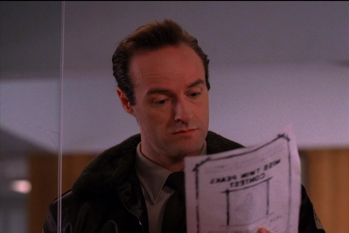 At 43:54 on the Blu-ray, the blue sticky note that was on