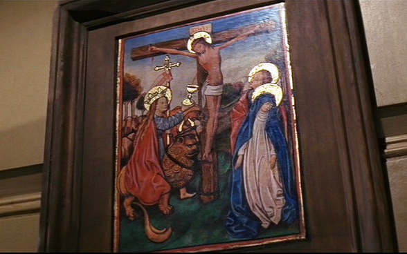 Indy points out that the upper and lower bars on the symbol of the Brotherhood of the Cruciform Sword forms a representation of the Grail cup itself! Indy's father presents a similar illustration in his Grail Diary.