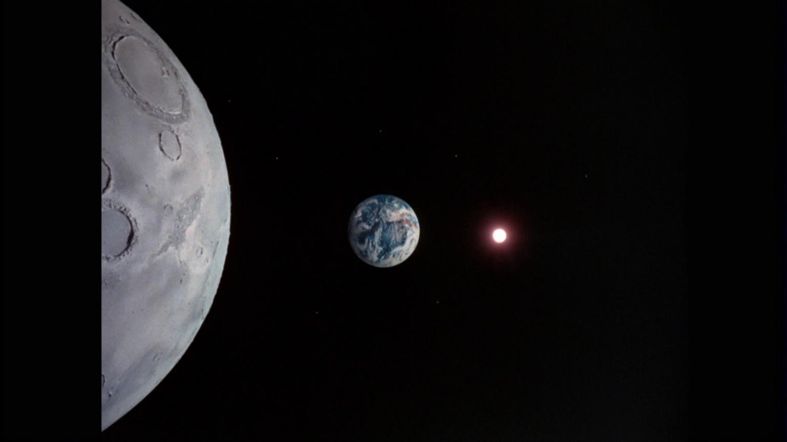 Earth in the background and, beyond that, the sun. Since the