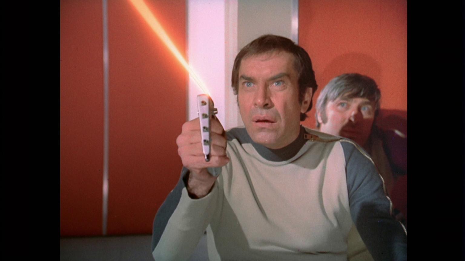 Commander Koenig arrives at Moonbase Alpha from Earth aboard