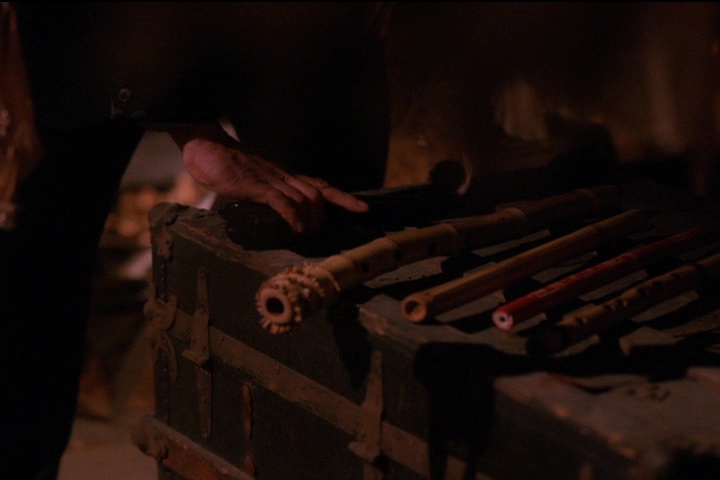 At 44:02 on the Blu-ray, four hand-carved wood flutes are